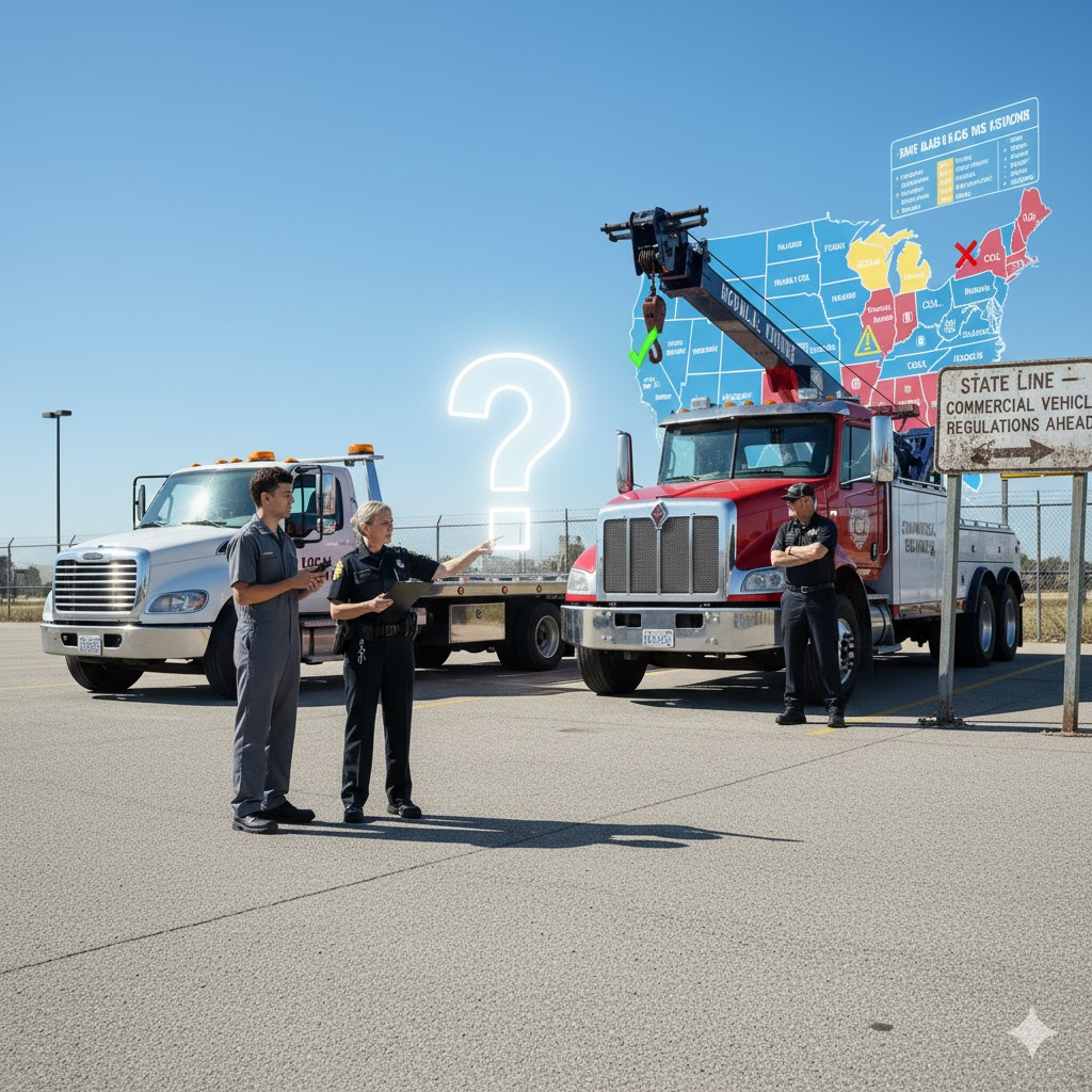 Two otherwise identical wreckers can have different obligations when they cross a state line. Before you expand service areas, verify: