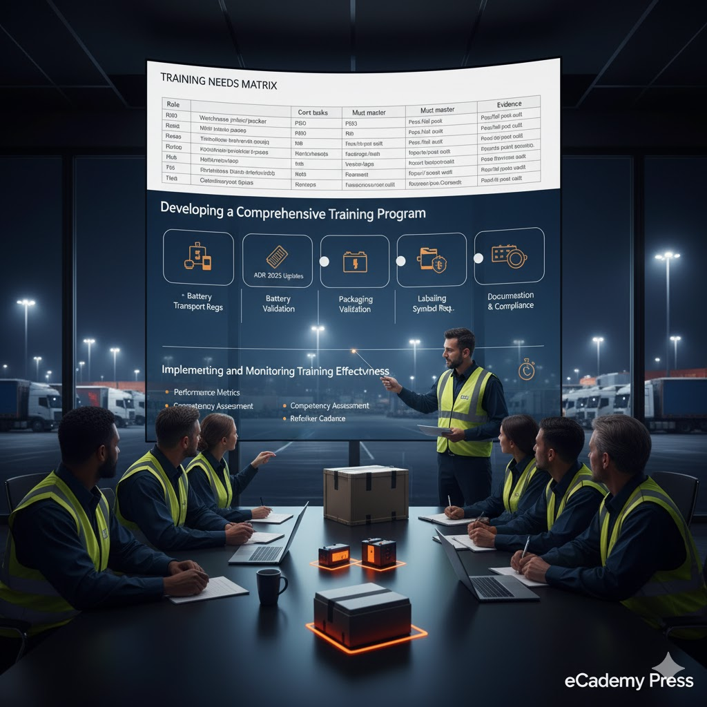 The chemistry adds complexity; your training programs should add clarity. Build a competency based training plan that pinpoints battery roles (picker, packer, load planner, DG signatory, driver, supervisor) and the exact hazardous goods training each must complete.